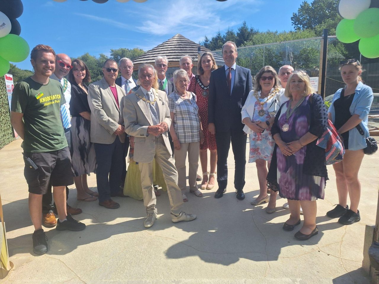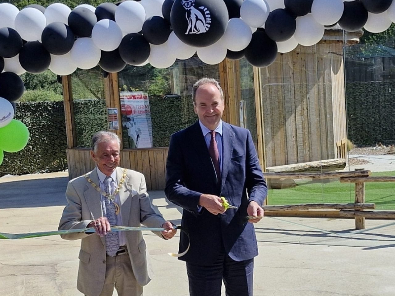 Hailsham, East Sussex 13th August 2024 – Knockhatch Adventure Park today unveiled its stunning new ring-tailed lemur enclosure, officially opened by the Lord-Lieutenant of East Sussex. The event marked a significant milestone for the park, showcasing its commitment to wildlife conservation and further expanding it’s open air enclosures in the Jungle Kingdom Zoo. The ribbon cutting took place under a unique lemur inspired black and white balloon arch provided by Sweethearts Party Boutique in Hailsham.