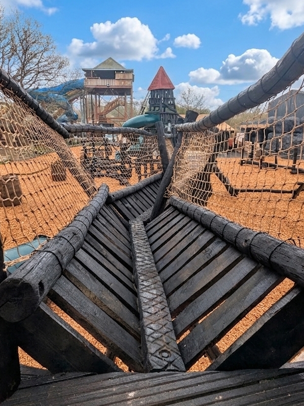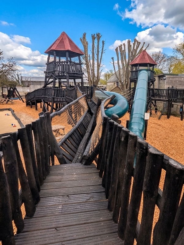 Get from one side to the other without touching the ground, with ropes to cling to and places to hide or play in the sandpit, there’s something for all of your adventurers.